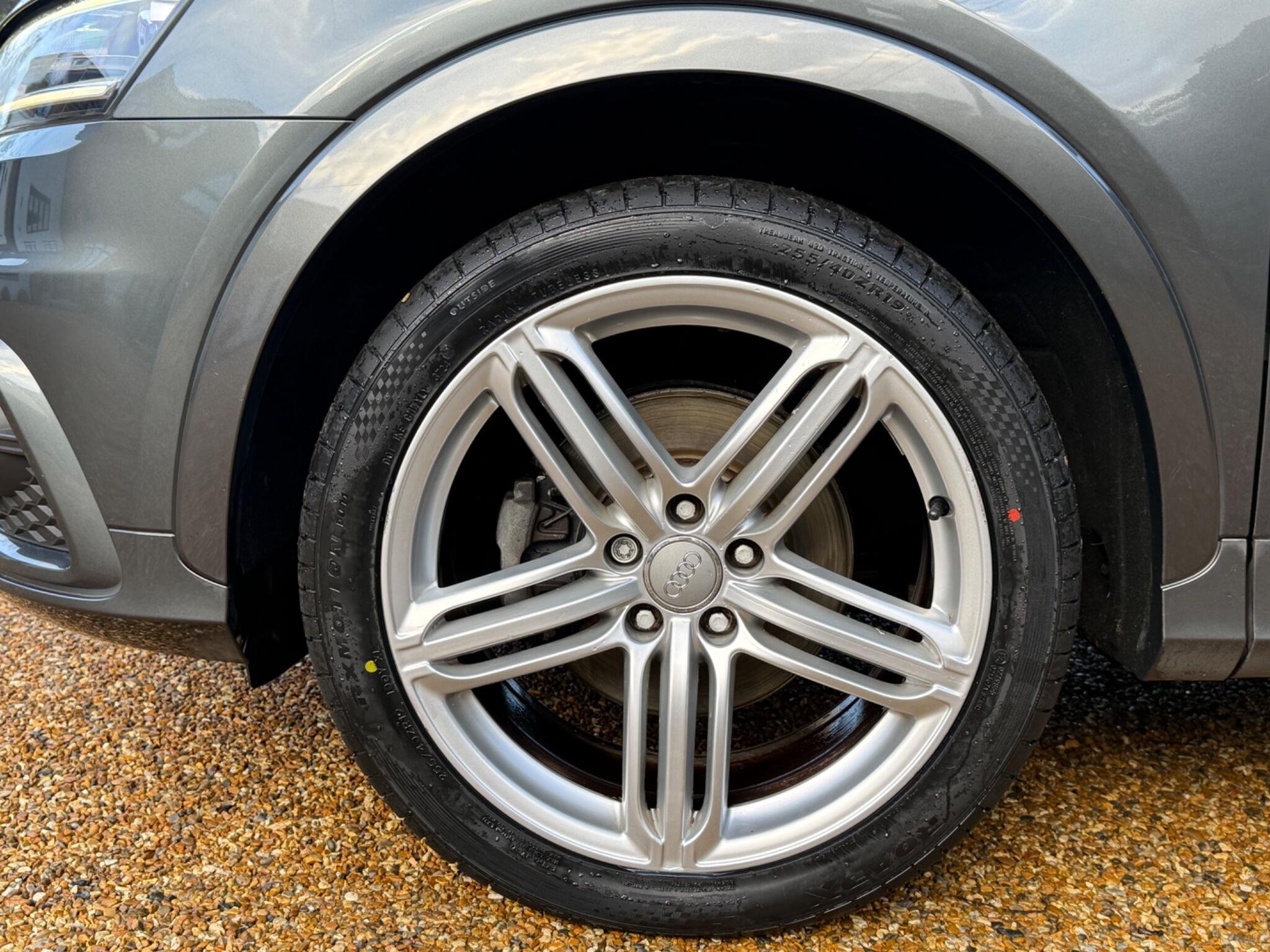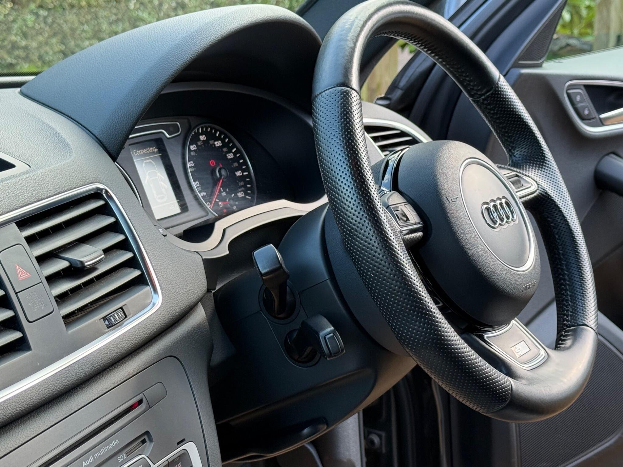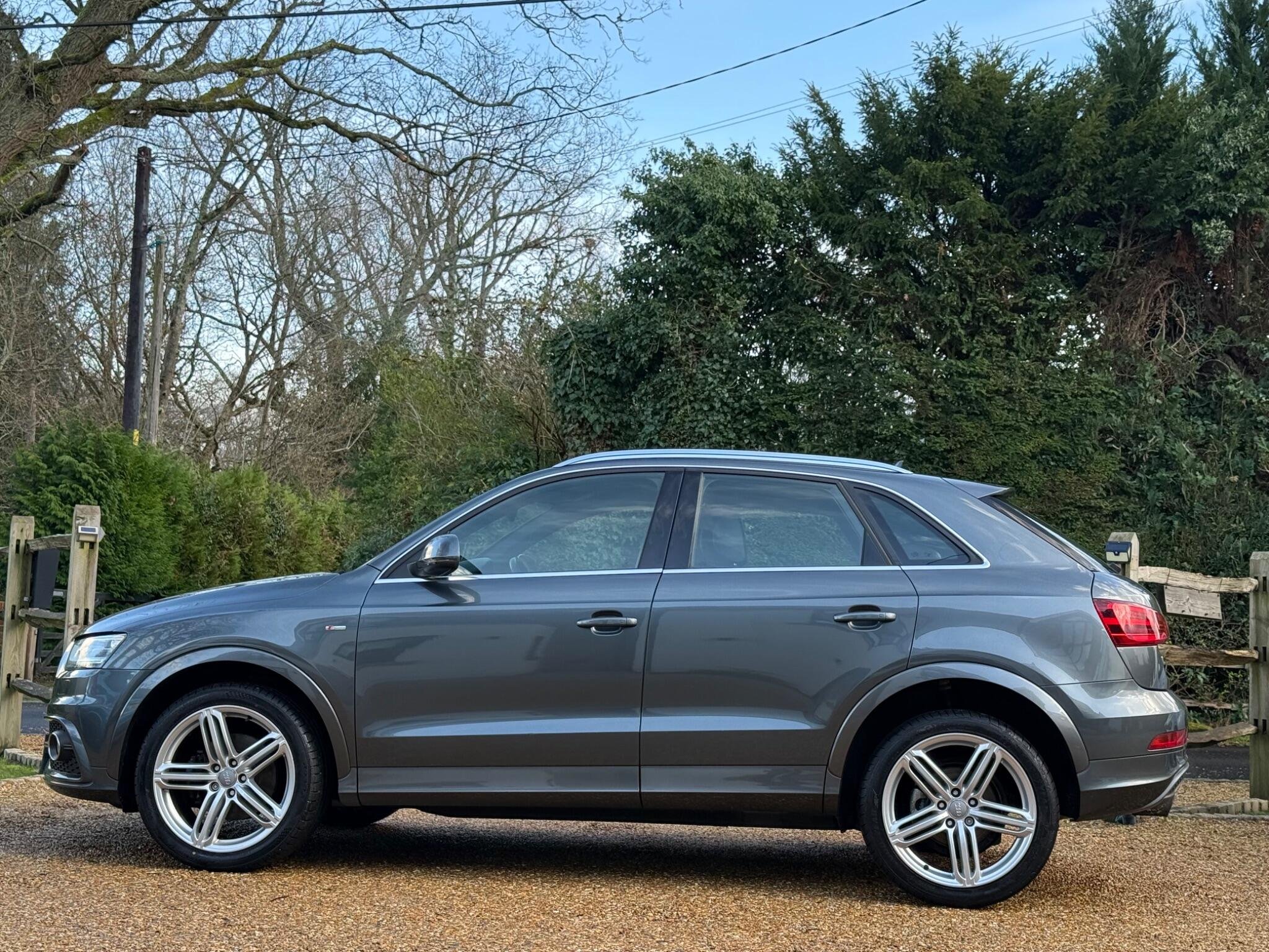 NOW RESERVED: We are delighted to offer this high specification and immaculate Audi Q3 in Monsoon Grey With Nappa Leather, Boasting a Full Audi Dealership Service History and an MOT valid until June 2026, with a recent Full Service carried out. This lovely Audi Q3 TFSI S line is a four wheel drive model, equipped with a 2.0 litre petrol engine, has covered a modest 77,000 miles, which is notably low for its age. It comes with a clear vehicle history check and a 3 month warranty for your peace of mind. Inside, you'll find the comfort of heated front sports seats upholstered in black Fine Nappa leather, part of a comfort package that also includes front and rear parking assistance, Led running lights, Cruise Control, MMI Navigation System. The exterior is enhanced by 19 inch alloy wheels in a 5 segment spoke design, and the door mirrors are heated, electrically adjustable, folding, and auto dimming.