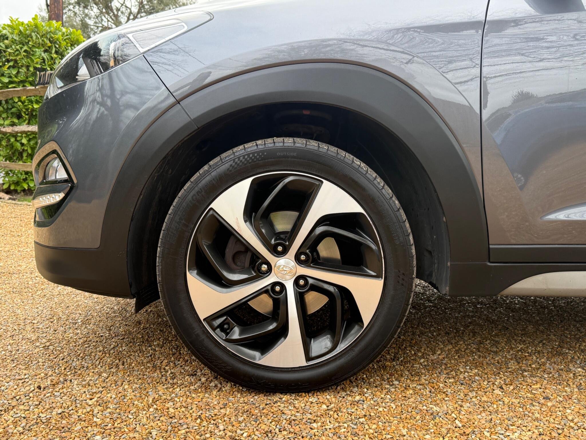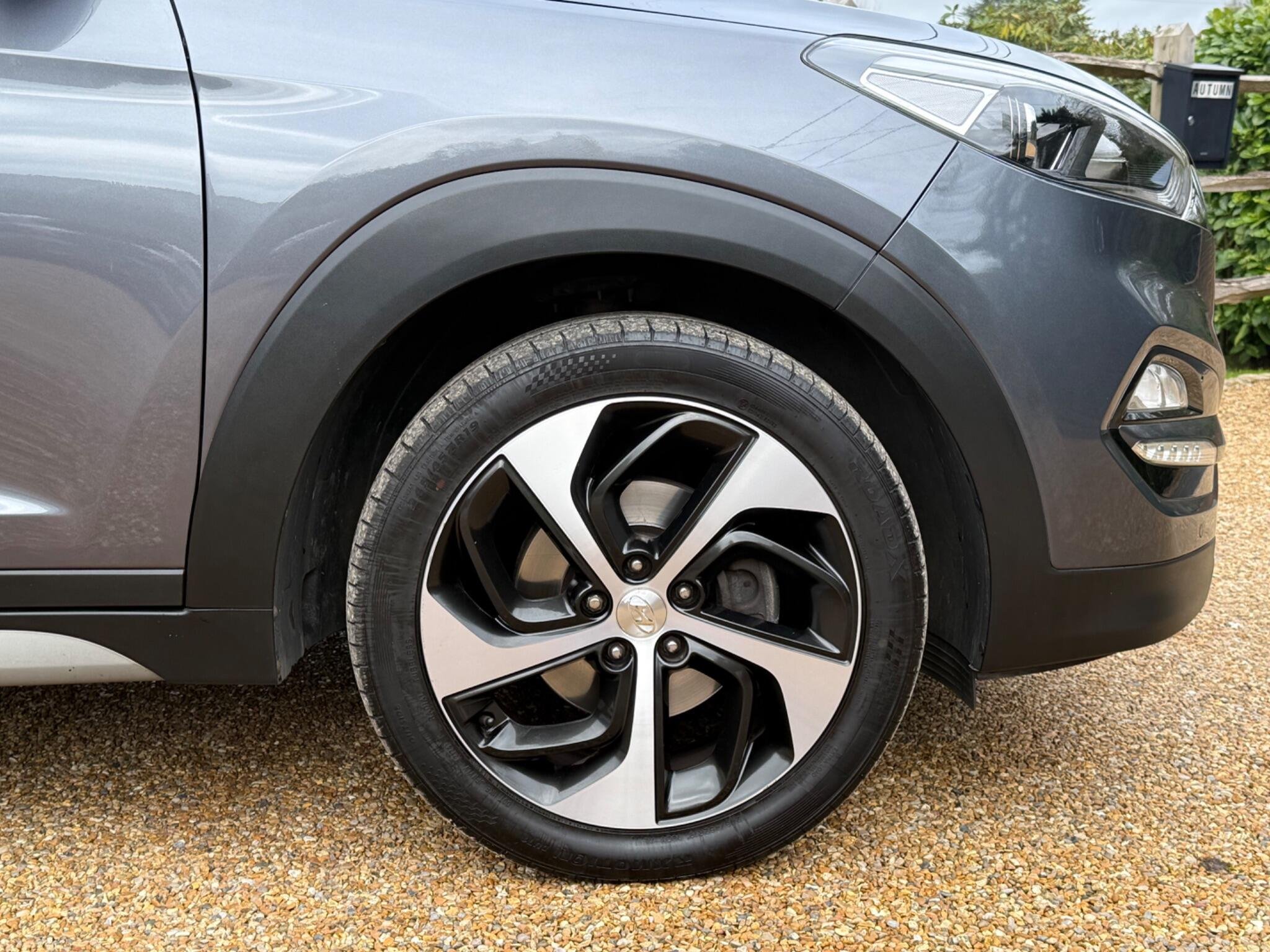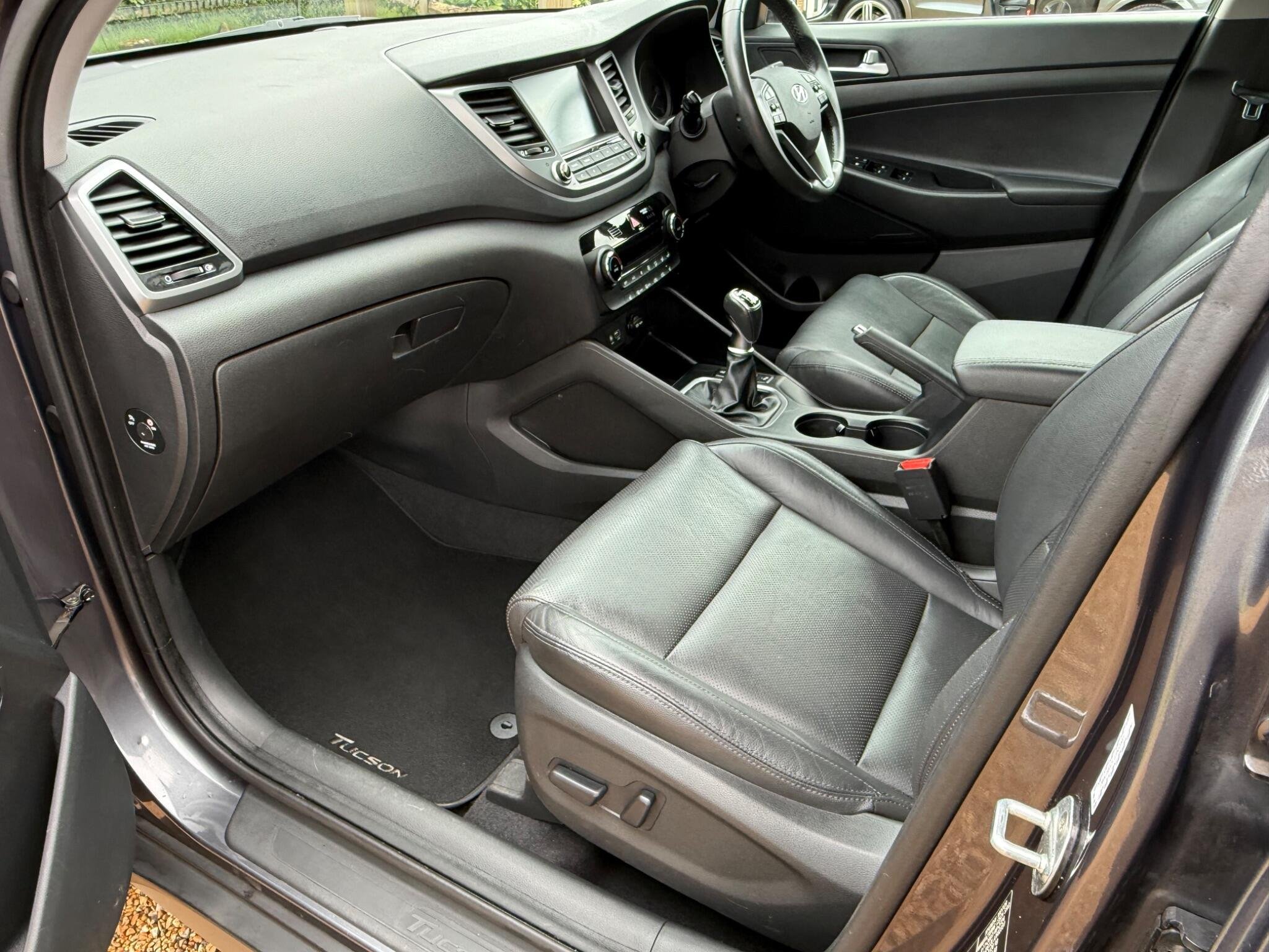 Just arrived with us is this beautiful 2017 Hyundai TUCSON T-GDi Sport Edition finished in grey metallic paint with the rare, full black leather upholstery.