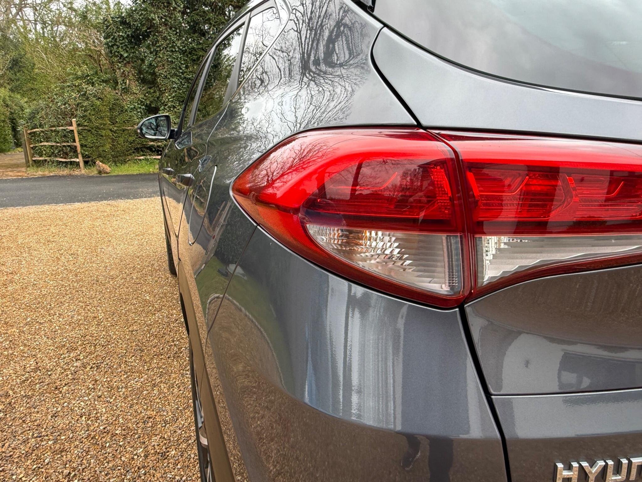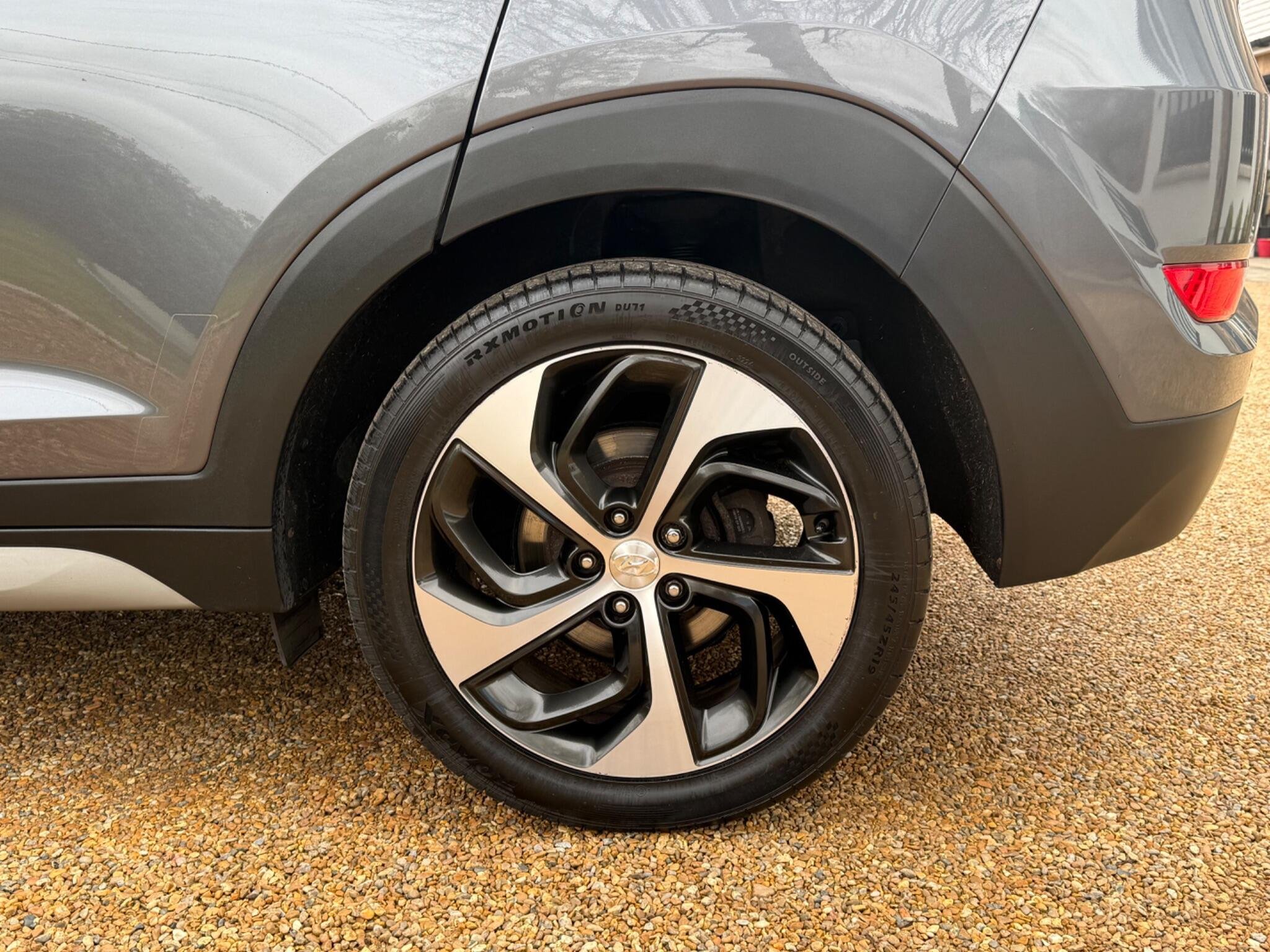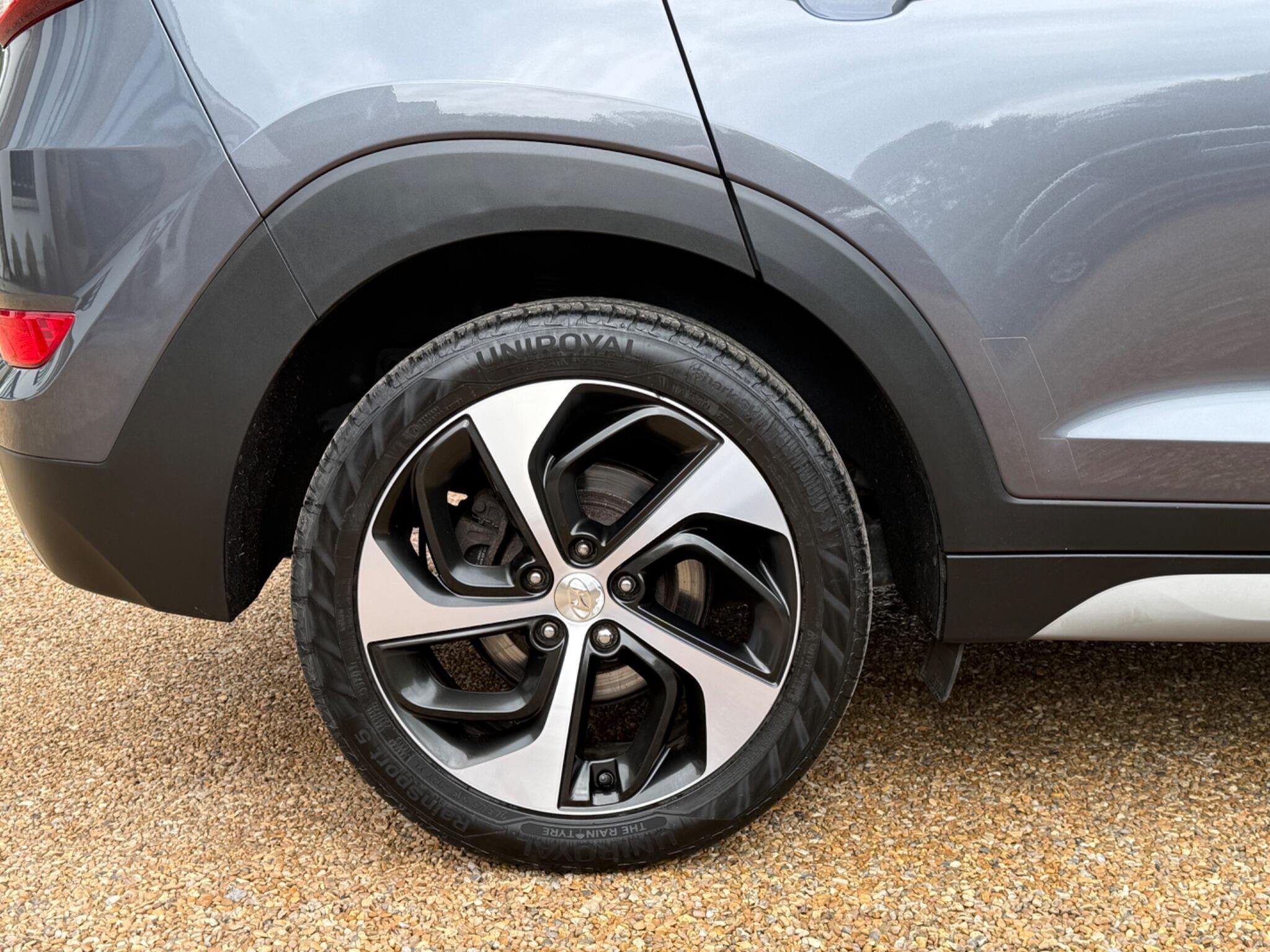 Just arrived with us is this beautiful 2017 Hyundai TUCSON T-GDi Sport Edition finished in grey metallic paint with the rare, full black leather upholstery.