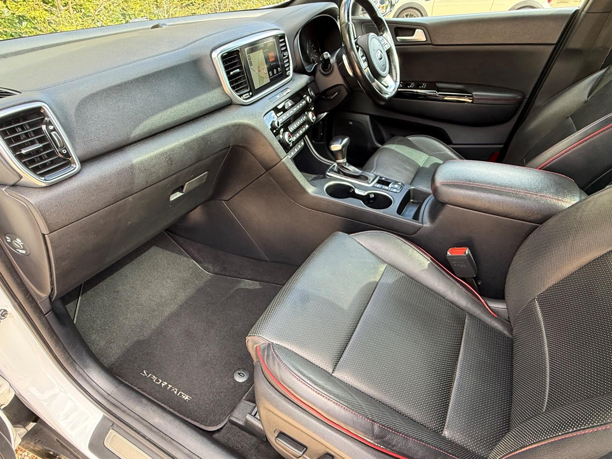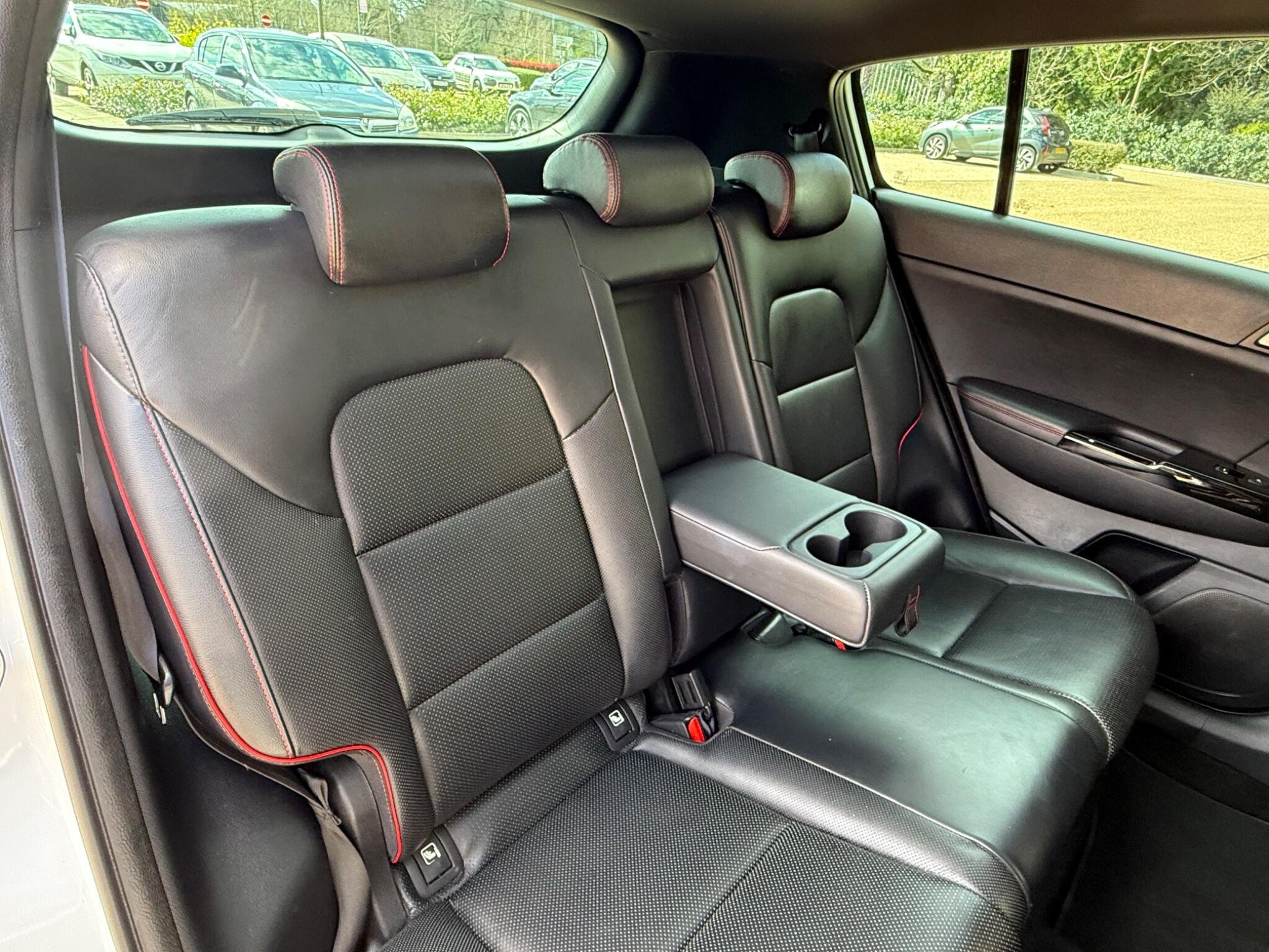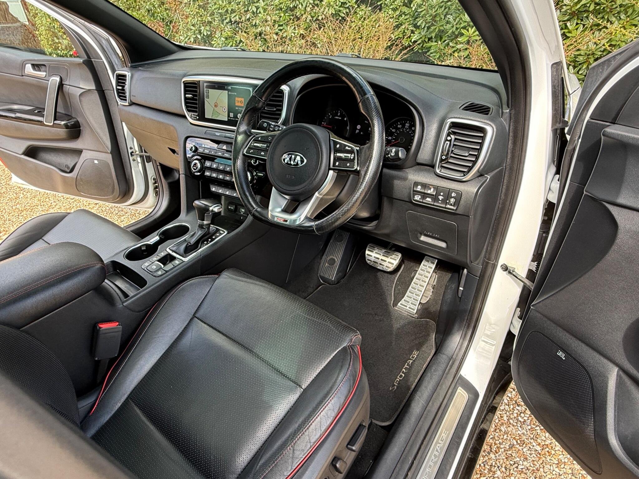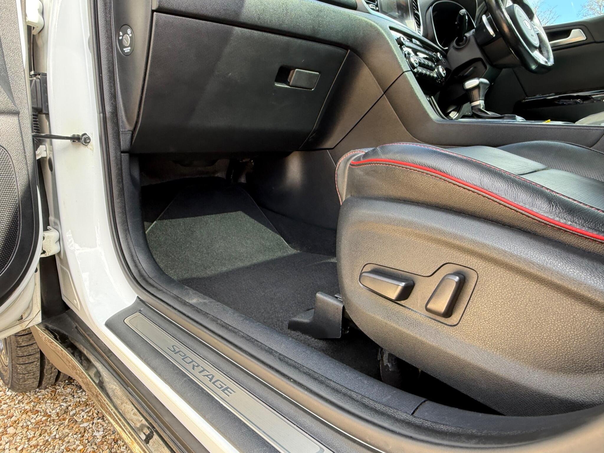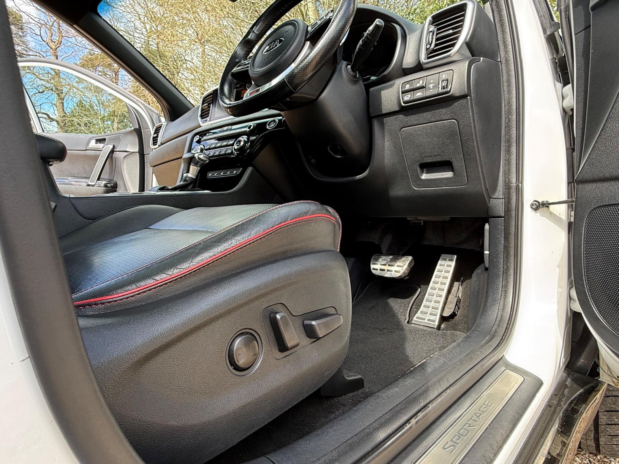 Just arrived with us is this ultra rare Kia Sportage GT-Line S in Pearlescent White Metallic with automatic transmission and beautiful black (heated) leather interior with red stitching.