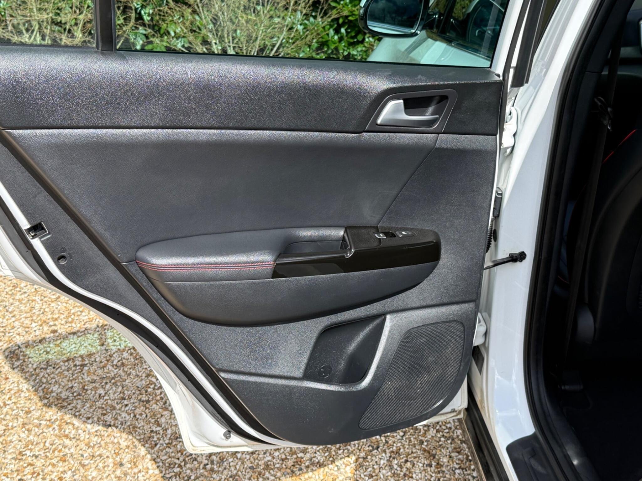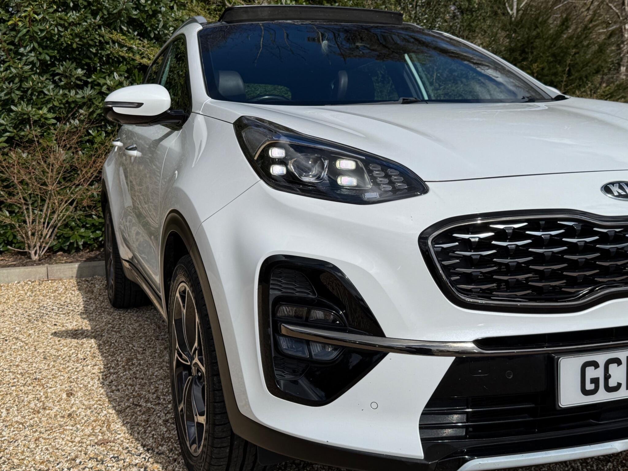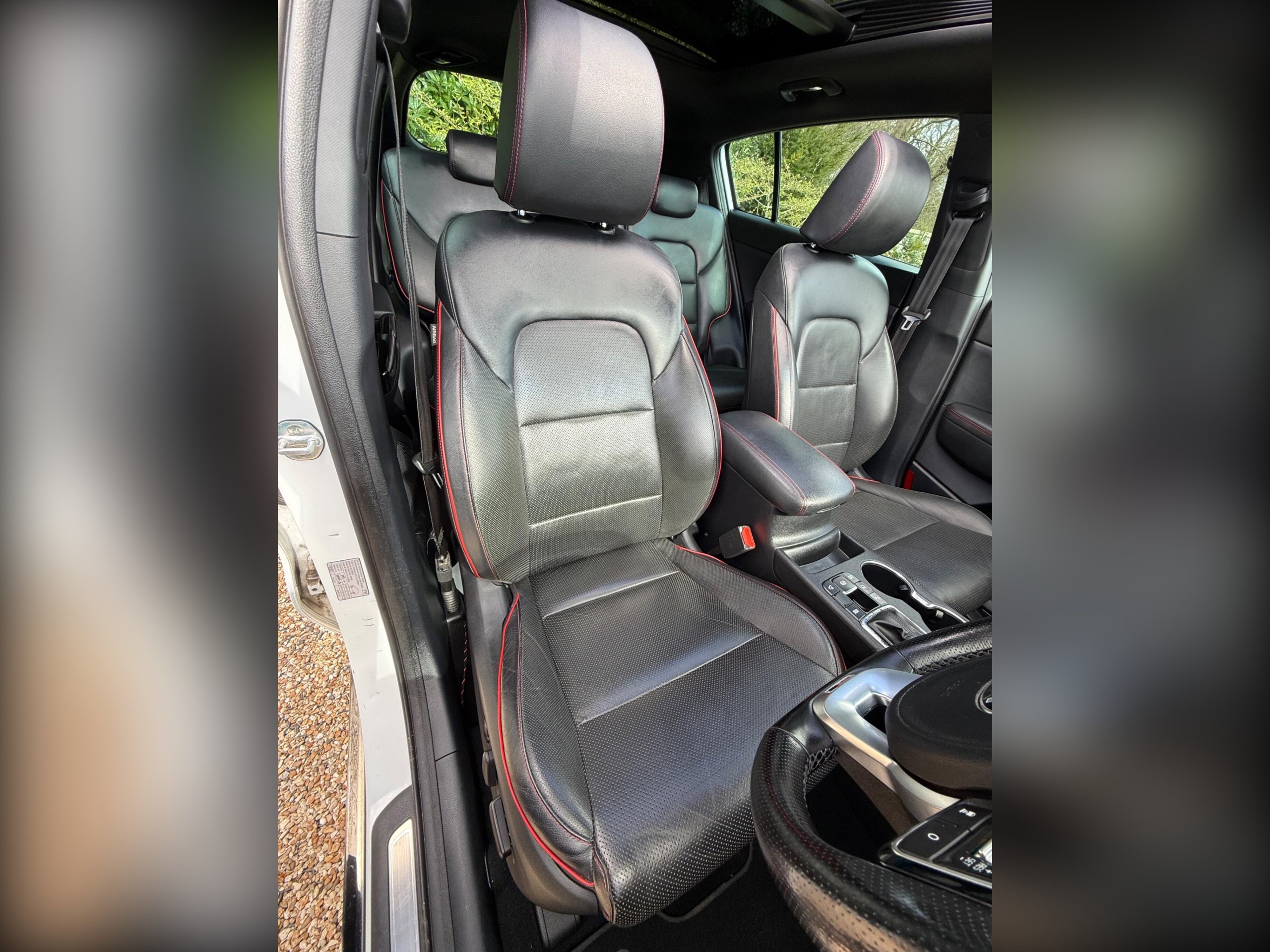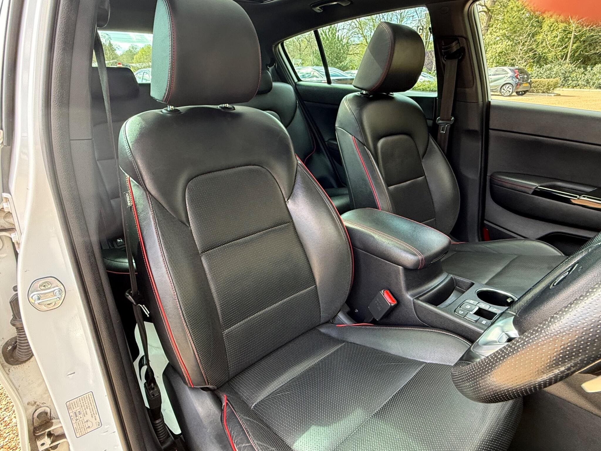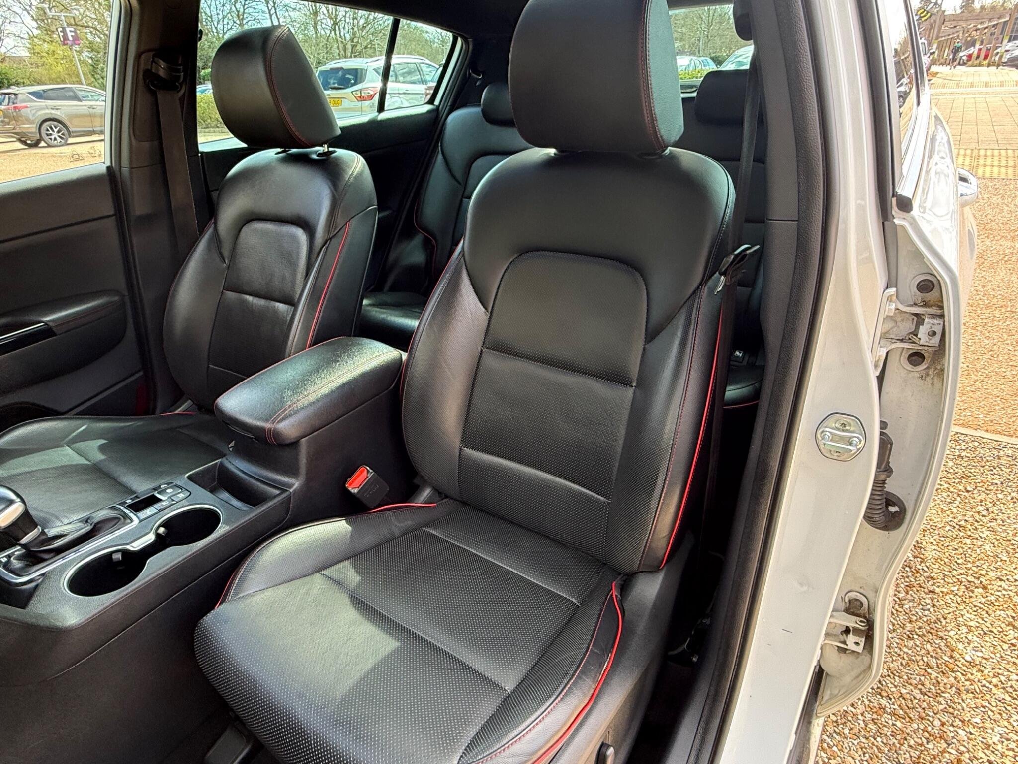 Just arrived with us is this ultra rare Kia Sportage GT-Line S in Pearlescent White Metallic with automatic transmission and beautiful black (heated) leather interior with red stitching.