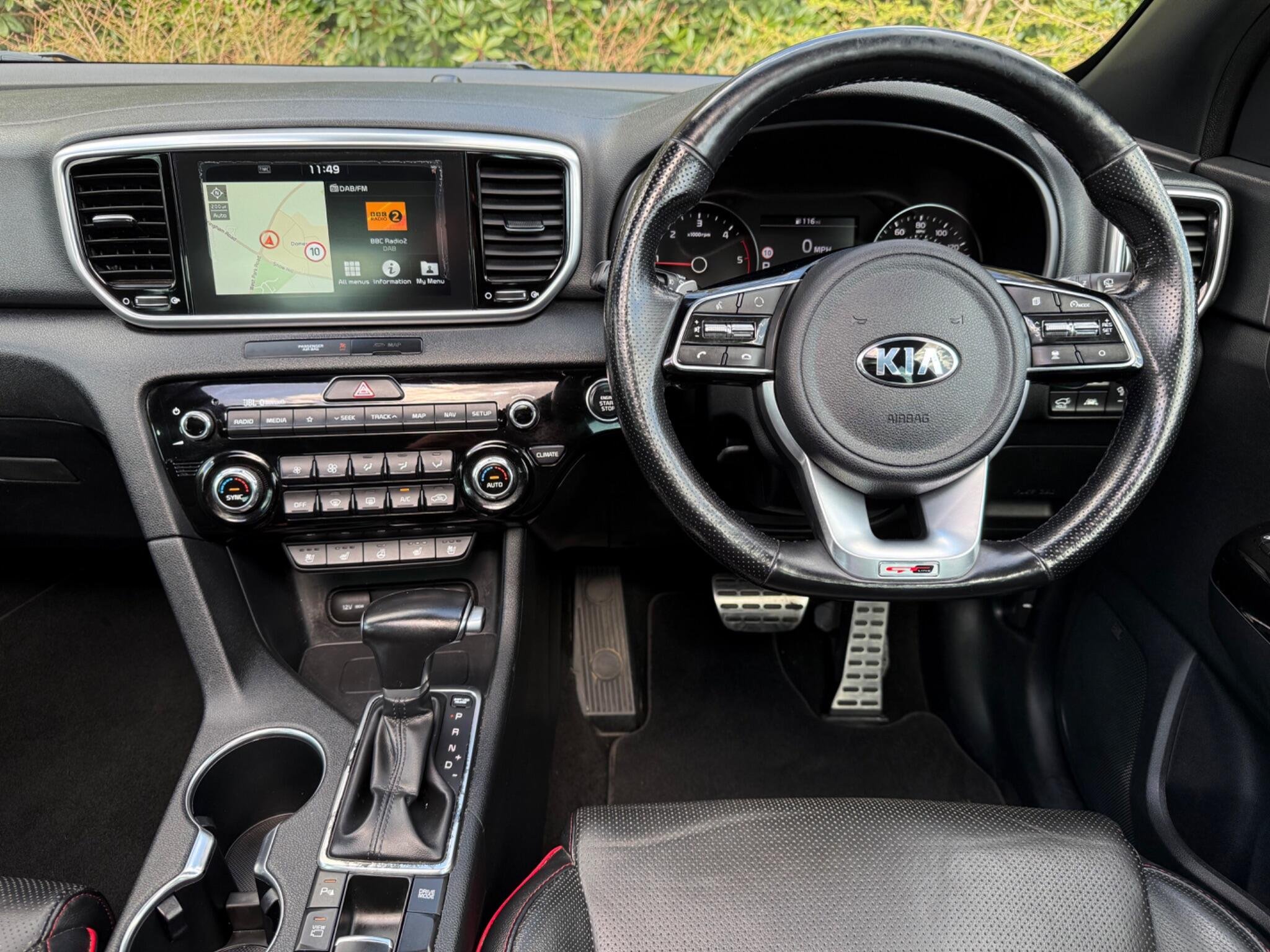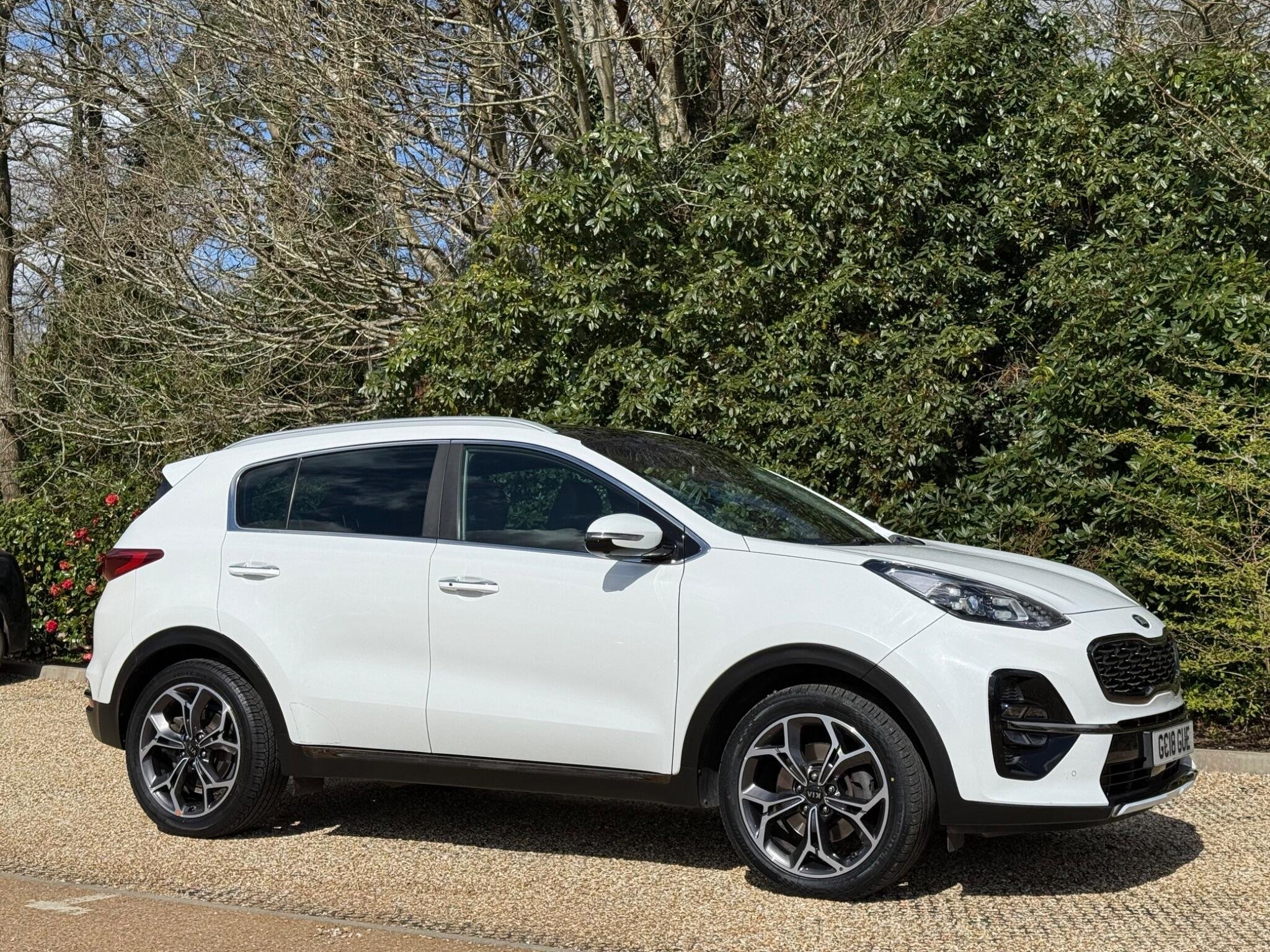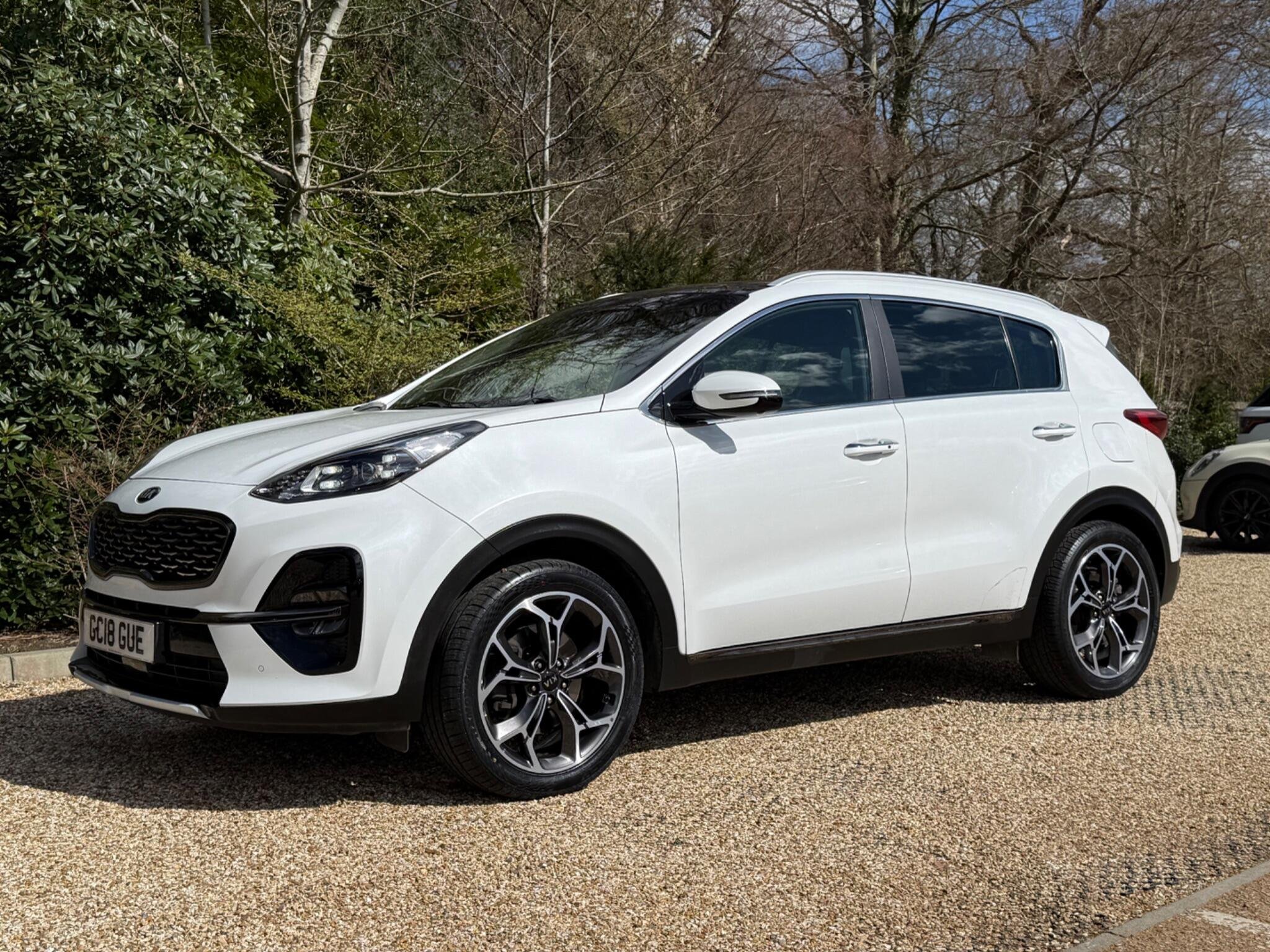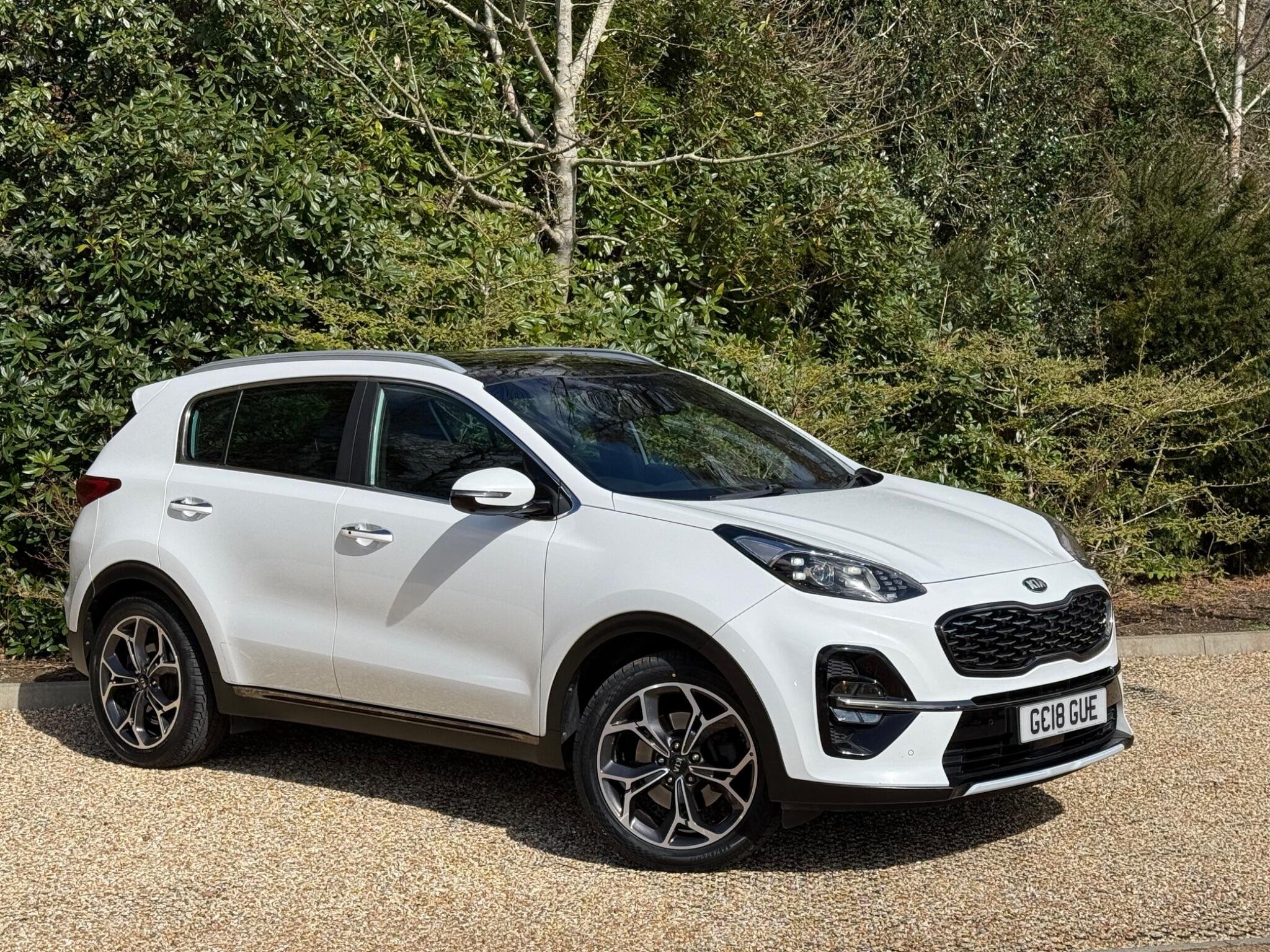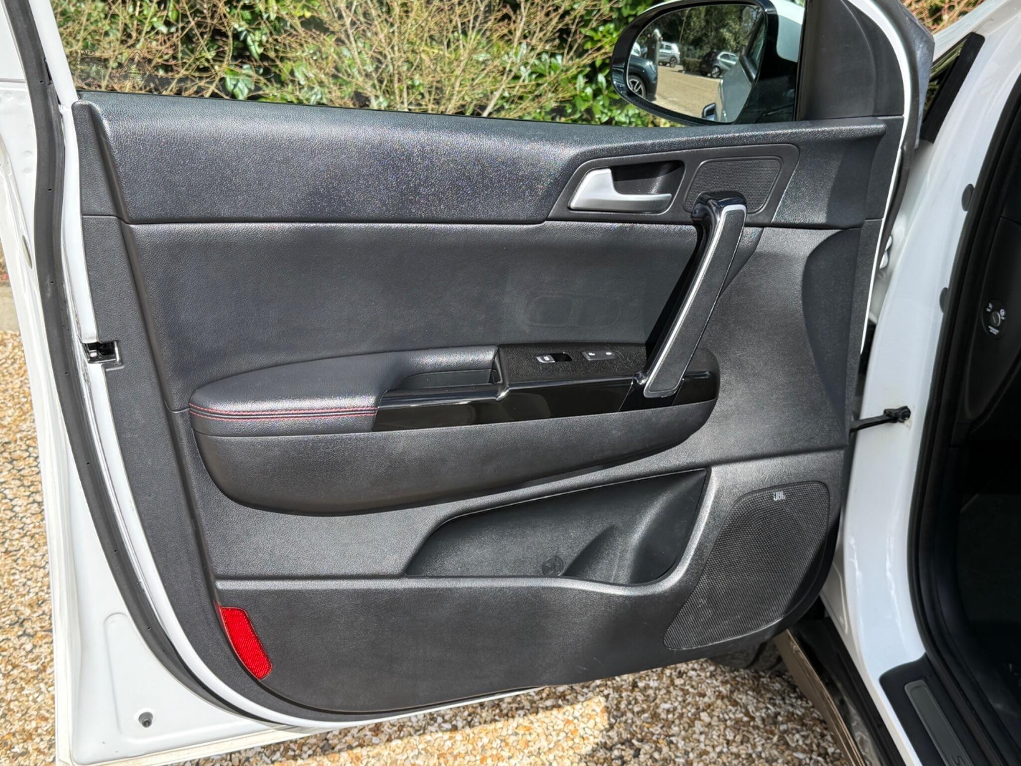 Just arrived with us is this ultra rare Kia Sportage GT-Line S in Pearlescent White Metallic with automatic transmission and beautiful black (heated) leather interior with red stitching.