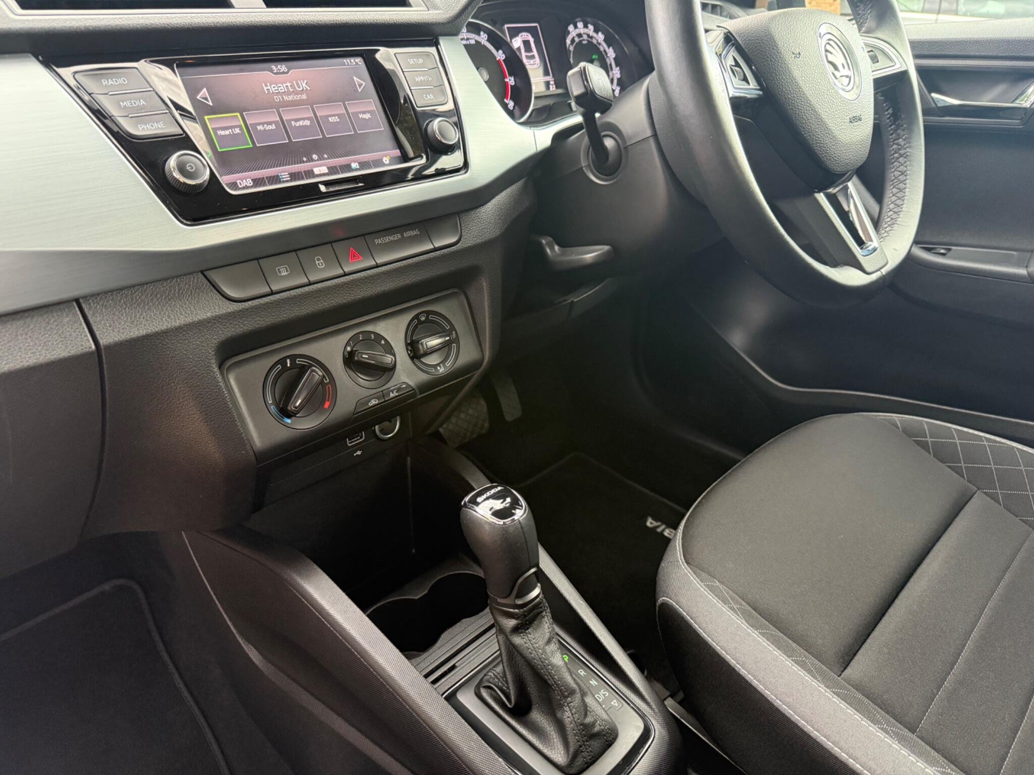 We are thrilled to present this outstanding 2019  Skoda Fabia 1.0 TSI SE DSG  Finished in sleek Silver Metallic paint, with Only 11,000 miles from new, with a Full Main Dealer Service History. One previous Owner, last serviced in March 2025 @ 10,784 miles. Mot 30/03/2026. This Very low-mileage, Automatic hatchback is a rare find. This Skoda comes with Two Remote Keys, extended warranty, Hpi check Report and all the relevant paperwork. Just some of this cars features include: Apple Car Play, Sat-Nav, Air Conditioning, Front and Rear Parking Sensors and lots more. This Fabia is in superb condition inside and out, a perfect choice for those seeking a practical, stylish, and low-maintenance car.